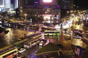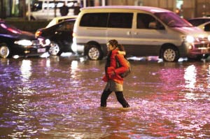 昨天晚上7時左右,(青島)香港中路與南京路路口一處600毫米左右的自來水管道破裂,大水噴起半米多高,西到徐州路,東到國際新聞中心,北到蘇寧電器南京路店,南到東海路的500米范圍內(nèi)一片汪洋。300多輛汽車通行受阻,100多名住在附近的居民困在車站焦急等候。自來水公司在1小時30分鐘后將水閥關(guān)閉。