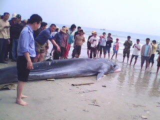 一位經(jīng)驗豐富的漁民表示,鯨魚有部分魚肚突出明顯,摸上去很硬,里面像有一個木球,他懷疑鯨魚誤吞了海面上用來掛網(wǎng)的浮球。專家不排除上述可能,但認為從鯨魚死亡的癥狀來看,擱淺死亡的可能性較大。