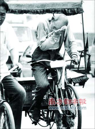 將物質(zhì)生活標(biāo)準(zhǔn)壓到最低點的老人,卻把能量釋放到最高度。一年365天,他沒歇過一天。他曾在夏季烈日的炙烤下,從三輪車上昏倒過去;他曾在冬天大雪滿地的路途中,摔到溝里;他曾因過度疲勞,蹬著車睡著了……由于年事過高,冬天里他常憋不住小便,棉褲總是濕漉漉的,他就墊上幾塊布照樣蹬車跑。