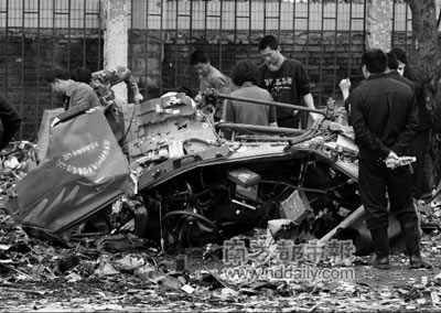昨日中午11時(shí)許,發(fā)生爆炸路段的兩頭仍然拉有警戒線,公安、消防等部門的數(shù)十名調(diào)查人員站在廢墟中,正細(xì)心翻檢地上的爆炸殘骸。前日因撲滅大火而積至10厘米左右深的消防用水已經(jīng)排完,一輛大型挖機(jī)開進(jìn)現(xiàn)場,進(jìn)行清理工作。