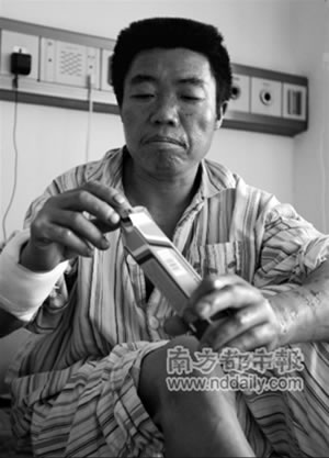 邱振付和身邊的劉諾通拔腿就朝南面的107國道跑。但是爆炸的沖擊波攜帶著一些燃燒的膠狀物朝他們襲來,一些膠體附在他們身上,灼傷了皮膚。邱振付說,當(dāng)時(shí)現(xiàn)場黑煙滾滾,他們睜著眼都看不清楚方向,只能亂闖亂撞。眼見前方有東西在起火,他和劉諾通干脆從火里沖了過去,兩人的頭發(fā)和臉部因此都被燒傷,但總算跑了出來。