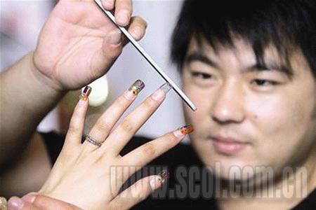 雖然男性美甲師在成都并不多見,然而就全國(guó)而言,男性美甲師卻并不新鮮:據(jù)業(yè)內(nèi)人士估計(jì),男性美甲師已占到從業(yè)人員的10%左右。而全國(guó)一年一度的“十大美甲師”評(píng)選中,每年都會(huì)有6—8名男美甲師入選。 (記者譚曉娟攝影華小峰)