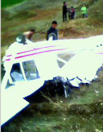 任廣增說,16日下午3時許,正在鋤地的他看到飛機自東向南轉(zhuǎn)圈飛行,在向西北方向轉(zhuǎn)時,機翼突然擺動起來,忽上忽下,在擺動到三層樓的高度時,一頭栽了下來,翻個筋斗后,摔到山丘旁的洼地里了。任老漢扔下鋤頭,一邊喊著“快救人”,一邊向出事地點跑過去。
