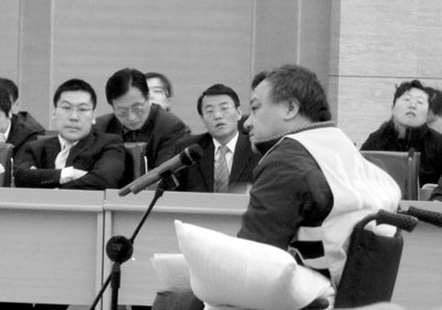 4月1日9時(shí),沈陽(yáng)南風(fēng)集團(tuán)董事長(zhǎng)吳寧左手疲憊地拄著頭,斜靠在輪椅上,一邊吸氧一邊聽(tīng)公訴人宣讀對(duì)他的指控。