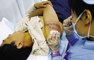 為證明自己深深的愛,27歲的張曉光(化名)將女友的名字刺上了左手胳膊,但兩人終究黯然分手。忍受了文身給自己生活、工作帶來的諸多不便后,前日張曉光來到重醫(yī)附一院整形美容科,決定將舊痕徹底清除迎接新生。