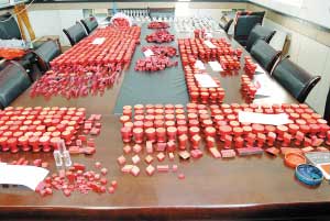 前日晚10時,公安南開分局治安科、王頂?shù)膛沙鏊、萬興派出所采取聯(lián)合行動,對華章里張某的暫住地實施突擊清查。張某絲毫沒有料到警察會深夜光臨,聽到敲門聲還以為有客前來取證便打開了房門。民警立即將其控制住并迅速沖入屋內(nèi),只見其外甥女王某正坐在里屋電腦前認(rèn)真制作一份高校畢業(yè)證書,桌上還散亂地擺放著許多打印出來的半成品。經(jīng)過對室內(nèi)細(xì)致搜查,民警先后從衣柜、抽屜及床下分別搜出用來制販假證的偽造的各部門公章、鋼印印模1000多枚,不僅全國各大名牌高校的公章及校長名章一應(yīng)俱全,還有各種行政事業(yè)機關(guān)部門的公章,甚至還有公安機關(guān)基層派出所的戶籍專用章及民警名章。同時還搜出大量空白假證半成品3000多冊,既有各種畢業(yè)文憑,也有各部門資質(zhì)證書,其中包括已經(jīng)制作好的各類假證10余件。