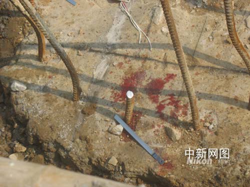 4月15日下午,出事的工地正在進(jìn)行澆筑地基作業(yè)。澆筑的地基坑深約兩米,面積足有兩個(gè)籃球場(chǎng)那么大,坑內(nèi)矗立著十多個(gè)尚未澆筑完工的樁柱,每個(gè)樁柱上端都豎滿了鋼筋。出事的工人胡某今年38歲歲,南雄市全安鎮(zhèn)人。事發(fā)時(shí)他正在深坑旁的土坎上操作攪拌機(jī)。攪拌機(jī)距深坑邊沿很近,約三四十厘米的土坎,只能供一個(gè)人勉強(qiáng)通過。胡某在作業(yè)過程中一不留神腳下踏空,人隨即往后摔倒,一頭栽下坑里。致命的是,坑內(nèi)樁柱上一根長(zhǎng)約50厘米、直徑約2.5厘米的鋼筋穿破胡某的左后頸部,再?gòu)淖炖锎┏觯愁D時(shí)血流如注失去知覺,生命危在旦夕。