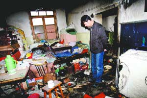 昨日7時許,記者在事發(fā)現(xiàn)場看到,發(fā)生汽油爆燃的平房分為兩間,墻壁和桌面上到處是焦黑的熏痕。平房孤零零立在一片拆遷廢墟之上,周圍只零星散布著其他幾棟平房。