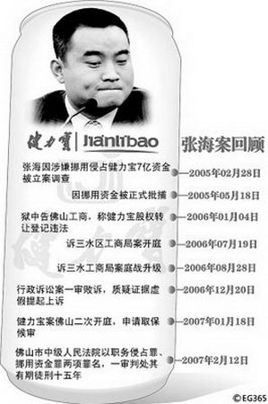 去年2月12日,佛山中院對前健力寶總裁張海職務侵占、挪用資金一案作出一審判決。該院認為,張海利用職務之便,侵占健力寶集團資金人民幣12074.824208萬元;挪用健力寶集團資金人民幣8644.678685萬元,據(jù)此判處張海有期徒刑十五年。判決后,張海馬上表示不服上訴。事隔一年零兩個月,該案的二審將在今天正式開庭。出于安全等原因,省高院借用了佛山中院的法庭審理案件。