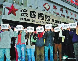 4月3日,近百名市民自發(fā)來到保羅國(guó)際門前,聲討“黑店”宰客,打出橫幅 “反對(duì)天價(jià)頭”,多個(gè)網(wǎng)友在保羅國(guó)際門前打出“很黑很后臺(tái)”的標(biāo)語。在市民沸沸揚(yáng)揚(yáng)的聲討中,4月3日下午,鄭州工商部門終于作出決定,限令“保羅國(guó)際”立刻停業(yè)整頓;4月5日,鄭州市二七區(qū)物價(jià)局對(duì)其作出罰款50萬元的行政處罰。