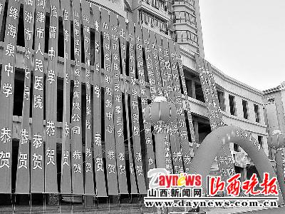 這家保潔公司位于運(yùn)城市區(qū)紅旗東街。當(dāng)日上午,記者在此經(jīng)過(guò)時(shí),這里已搭起來(lái)彩虹門(mén),上面寫(xiě)著“×××公司喬遷之喜”,彩虹門(mén)的兩邊是掛著對(duì)聯(lián)的一對(duì)氣球。后面的大廈墻面上掛滿祝賀條幅,有三十條左右。祝賀單位有臨汾市公安局、運(yùn)城市發(fā)改委等機(jī)關(guān)和事業(yè)單位,另外還有中華人民共和國(guó)交通部辦公廳、中國(guó)林業(yè)科學(xué)院等單位。
