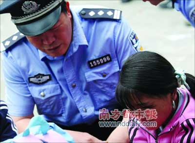 昨天下午5時(shí)30分左右,記者在一百貨店門(mén)口見(jiàn)到了兩個(gè)小女孩坐在地上,看到那么多警察圍過(guò)來(lái),都被嚇得哭了起來(lái)。