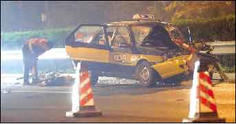 工人們正在封閉區(qū)域內(nèi)作業(yè)時(shí),慘劇突然發(fā)生。一名工人說,突然,一輛出租車穿越他們?cè)O(shè)置的路障,重重地撞到小貨車上。