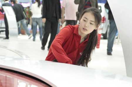 勞動(dòng)讓紅衣MM在眾多車模中突圍而出。