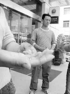 昨天,王麗和小姑栗麗再次來到景明佳園內(nèi)擺攤。上午11點,王麗準(zhǔn)備到小區(qū)菜場買菜,不料剛走幾步遇上了前天和她發(fā)生沖突的一名城管人員,當(dāng)即攔住對方!拔艺f手指被他弄得伸不直了,他竟然拽住我就打。”