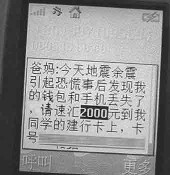 借著人們對四川地震災(zāi)區(qū)獻(xiàn)愛心的熱忱,一些不法分子也打起發(fā)短信騙錢的主意。