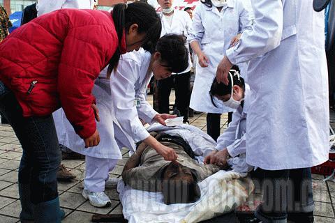 災(zāi)區(qū)現(xiàn)場(chǎng),除了災(zāi)民,就是從全國(guó)各地趕來(lái)支援的武警、部隊(duì)和志愿者。他們身著各色衣服,志愿者則臂纏黃絲帶。據(jù)了解,自發(fā)駕車前往漢旺災(zāi)區(qū)支援的志愿者多來(lái)自德陽(yáng)和成都。在救災(zāi)現(xiàn)場(chǎng),記者也看到來(lái)自瀘州、上海、貴州等地的醫(yī)療和消防救護(hù)隊(duì)正全力配合當(dāng)?shù)亻_(kāi)展救護(hù)工作。