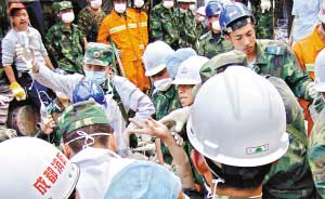 截至記者離開現(xiàn)場時,有9個鮮活的生命被來自全國各地的解放軍戰(zhàn)士和搶險人員從廢墟中解救出來。