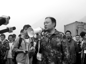 廖敏:情況很差,房子倒了很多。當時我們餓了一天多,村民們就把掛在屋里的玉米棒子給我們,我們就烤了吃。村里的糧食儲備也不多,我們和鄉(xiāng)政府的人估計了一下,就能支撐個3、5天。于是我們把村民組織起來,告訴大家情況,然后限制供應(yīng)糧食,每人每天只能領(lǐng)1斤大米。14日的時候,由于擔心汶川縣城,我?guī)Я?個人準備徒步去映秀,但走了8公里后,又遇到余震,山石不斷滾落,我們不得不返回原地。