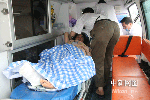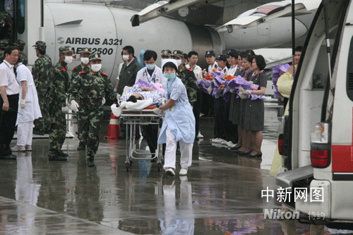 十一點(diǎn)左右,傷員一個(gè)個(gè)被武警官兵抬出飛機(jī),并送上等候在停機(jī)坪上的三十六輛救護(hù)車(chē),并被迅速送往浙江金華三家最好的醫(yī)院接受治療。