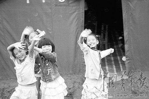 “六一”節(jié)快到了,災(zāi)區(qū)的孩子們怎么樣了?房子倒了,玩具沒了,學(xué)校停課了,他們該干什么呢?帶著這些問題,記者走訪了幾個(gè)受災(zāi)群眾安置點(diǎn)。出乎意料的是,盡管在帳篷和活動板房這種簡陋的條件下,孩子們的樂觀仍讓人動容。