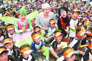 隨后,劇團(tuán)不但找齊了來自國家話劇院、北京兒藝的專業(yè)演員,還請來著名歌手林依輪擔(dān)任主角,為災(zāi)區(qū)孩子們排練的是專門反映同學(xué)間友誼的《泡泡口香糖》。在萬通公益基金、中歐商學(xué)院等熱心幫助下,還批發(fā)來了價(jià)值60萬元,重達(dá)5噸的學(xué)習(xí)、生活用品。今天上午,八喜冰激凌還專門開來了冷藏車跟著劇團(tuán),給觀看演出的孩子們免費(fèi)派發(fā)冷飲。六一節(jié),遭受傷害的幼小心靈得到了溫暖和歡樂……(特派記者 閻彤 攝影)