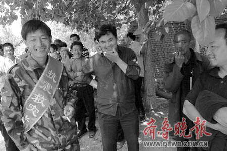 村頭的大樹(shù)上掛著“歡迎抗震救災(zāi)英雄回家”的紅色條幅,全村的父老鄉(xiāng)親都涌了出來(lái),站在小路邊夾道歡迎,十個(gè)人一下車,鞭炮聲便響個(gè)不停。鄉(xiāng)親們摸摸這個(gè)、瞧瞧那個(gè),想看看平日里見(jiàn)慣了的這幾個(gè)人是不是突然長(zhǎng)了三頭六臂。
