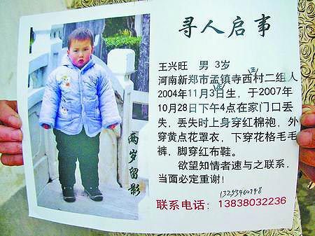 據(jù)死者的爺爺王新有介紹,他有兩個兒子,去年10月29日,二兒子3歲的兒子王興旺突然失蹤,當時家人以為是孩子走失了,全家人一邊到處張貼尋人啟事尋找,一邊報案。找了很久,沒找到。