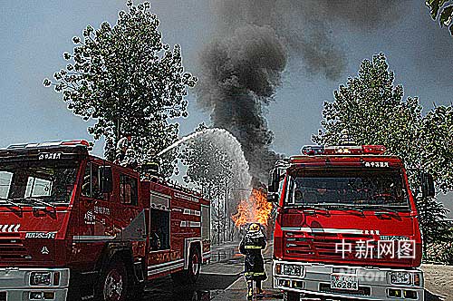 接到報警后, 消防隊員火速趕赴現(xiàn)場,分派9輛消防車對失火車輛進行撲救。中午12時30分記者離開現(xiàn)場時火勢已經(jīng)得到控制。