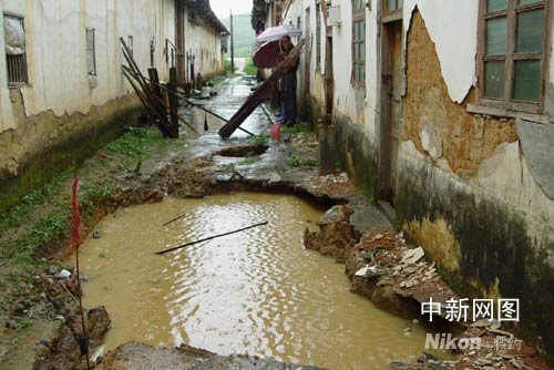 地陷發(fā)生在兩排民房之間的通道上