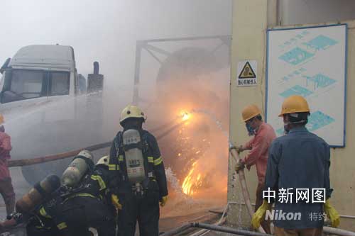 據(jù)該公司相關(guān)人員介紹,大貨車兩個(gè)槽罐共裝載了18噸黃磷,13號(hào)晚上從貴州運(yùn)抵南寧后,一直就停在公司里面。上午10點(diǎn)左右,靠近車頭的槽罐底部突然泄漏,泄漏的黃磷遇空氣后自燃,導(dǎo)致火災(zāi)的發(fā)生。