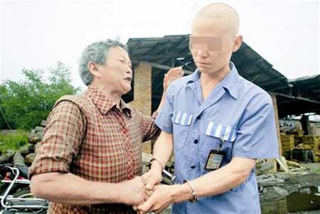 正說著,父親跌跌撞撞地跑過來!皟鹤,您要是不好好改造,我這把老骨頭也許再看不到你了!”回頭看見陪同在鄧某身后的獄警負責人范仲根時,老人一把拉住他的手,突然間跪倒在范仲根前嚎啕大哭!岸嗵澞銈冏屛覀儓F聚,不然我這把老骨頭真的難以見到兒了!”鄧的父親在地震中左肩受傷,經(jīng)治療后已基本恢復健康。范仲根把監(jiān)獄為鄧某特意準備的500元災后慰問金遞上去,老人怎么也不肯收。老人說,能讓他們父子見面已感激不盡,再也不能給政府添麻煩。在其他干警勸說下,老人這才接過慰問金。一行人在鄧家?guī)づ駜?nèi)落座后,鄧某的父親又先后3次下跪,以示對監(jiān)獄管理局的感謝。