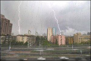 本報(bào)訊(見習(xí)記者 朱青)昨天下午,包括杭城在內(nèi)的浙北大部分地區(qū)發(fā)生了近幾年罕見的一次雷陣雨天氣過程。這次降雨不但雨勢(shì)迅猛,還伴有電閃雷鳴,據(jù)市氣象臺(tái)統(tǒng)計(jì)數(shù)據(jù),杭州短時(shí)最大一小時(shí)雨量達(dá)到了32.9毫米。據(jù)杭州市雷電監(jiān)測(cè)網(wǎng)數(shù)據(jù),當(dāng)時(shí)出現(xiàn)閃電3361次。
