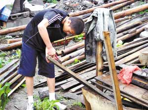 什邡市湔氐鎮(zhèn)的氣溫有點(diǎn)高,徐星手里有根鋼筋,任務(wù)是撬下屋頂仍完好的椽子。他已記不清何家是第幾站,說(shuō)自己只是在做力所能及的事情。