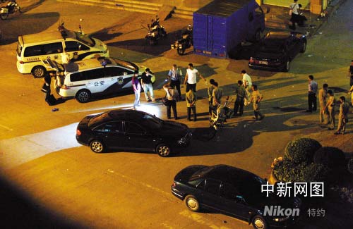 二十四日凌晨,警察在事發(fā)出租屋門(mén)前的馬路旁勘查。 作者 陳棟