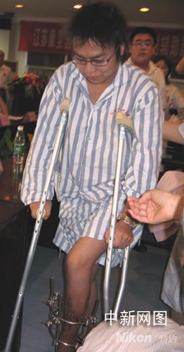 中新網(wǎng)南京六月二十七日(朱曉穎)今日晚間,在江蘇接受康復治療的四川地震災區(qū)病員蘇波將和他的另幾名病友登上開往家鄉(xiāng)的火車。雖然蘇波的左腿依然有鋼筋“穿皮刺肉”,兩側(cè)縫有近三十厘米長的黑色縫合線,但可以看出,對于“回家”,他興奮異常:“下火車第一件事,告訴我的朋友們,我回來啦!”