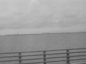 他分析,首先從照片上藍(lán)色的護(hù)欄分析,該讀者拍攝的位置剛好位于海中平臺(tái)附近,也就是大橋的中央位置。而從拍攝角度分析,相機(jī)拍攝的方向剛好與大橋垂直,也就是與橋平行的方位,從這點(diǎn)上看,無論是大橋的西邊還是東邊,都是一望無際的海面,絕對(duì)不可能出現(xiàn)任何高樓林立的城市景象。