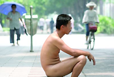 當(dāng)日中午12時(shí)05分,在古城路文物苑大門(mén)附近,記者果然看到了那名一絲不掛的“行為藝術(shù)者”,而報(bào)料的兩名青年男子也在附近。裸體男子最初坐在路沿石上一動(dòng)不動(dòng),10分鐘之后又站起來(lái)四下走動(dòng),他既沒(méi)有做出襲擊路人的舉動(dòng),也沒(méi)有對(duì)路過(guò)姑娘做下流的動(dòng)作,對(duì)記者的拍照也不加理會(huì)。