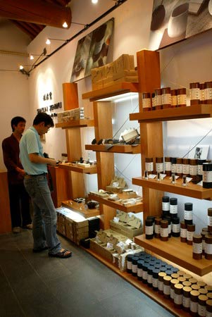 踏入少林歡喜地的店門,立即就會有工作人員迎上去,為游客介紹店內(nèi)特色。店內(nèi)除了有裝潢新穎的商品銷售場所和設(shè)計廊,為游客提供清涼舒適的休憩和餐飲的禪露素食餐廳外,還專門設(shè)有少林文化禪修及功夫和少林茶席免費體驗場所。在免費體驗區(qū)不但能學到簡單禮佛動作和了解少林文化外,“品禪茶,靜心音”更是讓游客回味無窮。據(jù)店內(nèi)負責人介紹,店內(nèi)設(shè)置的免費體驗區(qū),未來還會有寺內(nèi)僧人作引導師,帶領(lǐng)游客親身了解少林的禪、武文化,在全國景區(qū)內(nèi)首開先河。
