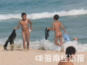 看著大人們都裸體下海,小孩子們更是毫不顧忌