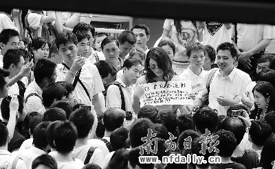 昨日(7月8號(hào))下午2時(shí)許,一身著粉紅色衣服、戴太陽(yáng)鏡、穿黑色網(wǎng)狀絲襪的摩登女郎現(xiàn)身深圳福田區(qū)華強(qiáng)北曼哈購(gòu)物廣場(chǎng)前,脫掉上衣,只留下黑色內(nèi)衣,手舉“徐滇慶再道歉,因賭房?jī)r(jià)教授徐滇慶僅在某報(bào)刊登半版道歉廣告引起部分市民不滿,身為徐老粉絲,本人獻(xiàn)玉體做版,為其追補(bǔ)道歉,以求對(duì)其諒解!”的牌子引來(lái)眾多路人圍觀、議論。