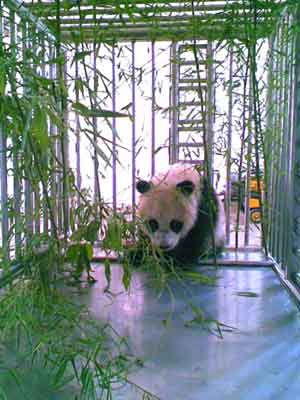 可能有生命危險。工作人員講:它現(xiàn)在不進食的原因一方面是習(xí)慣了野生狀態(tài),另一方面是在人們捕救它時受到了驚嚇。為了緩解熊貓的緊張情緒,工作人員一方面使用藥物讓其精神放松,一方面在它的籠子里放竹子,模擬野生環(huán)境,希望它能盡快進食,但收效甚微。