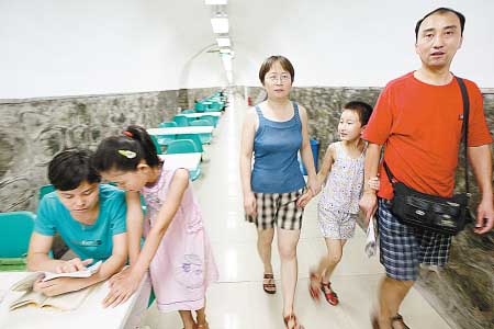 沒(méi)有風(fēng)扇,不用空調(diào),昨日下午,11歲的李翹小朋友涼涼快快地在室內(nèi)做著暑假作業(yè)。原來(lái),她和幾個(gè)小伙伴一起,來(lái)到了作為人防納涼中心的安東街防空洞里,成為防空洞開(kāi)放首日迎來(lái)的避暑市民之一。