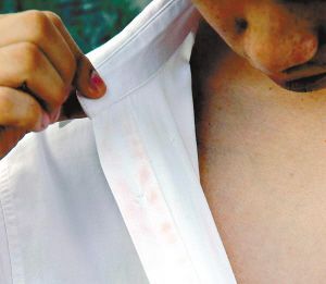 小黃驚訝地發(fā)現(xiàn),自己貼身穿了一段時間的衣服上面,東一塊西一塊全部是紅色的印跡。由于當時小黃穿的是一件白襯衫,紅色的印跡顯得格外清晰。