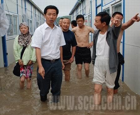 災情發(fā)生后,江油市委書記、人大主任易林,市委副書記、市長宋開慧,政協(xié)主席范來山等四大班子領導立即奔赴現(xiàn)場指導搶險工作。據(jù)了解,這次強降雨主要是受高原低渦東移和西南暖濕氣流共同影響造成的。由于雨勢太猛,降水集中,各安置小區(qū)內排水系統(tǒng)不堪重負。記者在李白大道以西的安置小區(qū)京江花園北區(qū)、南區(qū)內看到,齊膝深的洪水漫進了活動板房內,安置群眾室內的沙發(fā)、床、桌子等家俱漂浮在水面,電視機、洗衣機、電冰箱、電風扇、糧食等都被泡壞。