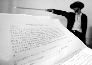 昨日上午,張謙卑拿著這紙協(xié)議來(lái)到本報(bào),說(shuō)出了自己的苦悶。他說(shuō),2007年8月28日,他和網(wǎng)友“自由魚(yú)”李×見(jiàn)面并相戀,因?yàn)閺堉t卑一直懷疑李×不是處女,還多次側(cè)面通過(guò)QQ試探到李×似乎有其他男人,所以心結(jié)遲遲未解開(kāi)。“她哭著承諾沒(méi)有,但我還是不死心,我們因?yàn)檫@還曾經(jīng)分手過(guò)一段時(shí)間!睆堉t卑說(shuō),今年5月份他們復(fù)合了,但是他心里仍有陰影,于是昨日自己草擬了一份“咒死協(xié)定”。“我已經(jīng)和她把意思表達(dá)了,她同意簽字!睆堉t卑說(shuō)。