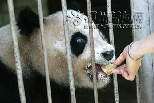 陳玉村介紹,“07”號(hào)大熊貓的檢查報(bào)告讓人們對(duì)它的健康狀況更加擔(dān)憂,“專家可能先給它作眼科手術(shù),目前我們先治它的眼睛潰瘍,之后,分別給它的眼睛動(dòng)手術(shù)。現(xiàn)在正用中藥對(duì)它進(jìn)行先期治療,把中藥燉成湯,讓它當(dāng)水喝。因?yàn)橛兴幬,它?jīng)常不喝,工作人員就在里面放點(diǎn)它喜歡吃的食物哄它喝一點(diǎn)”。