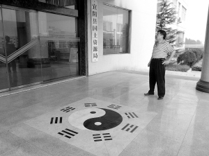 據(jù)悉,當(dāng)時(shí)宜陽縣國土資源局辦公室的一名工作人員向記者解釋說,這幅八卦圖僅僅是一個(gè)圖形而已,沒有任何特殊含義。不過,來該局辦事的許多當(dāng)?shù)剞r(nóng)民卻認(rèn)為,在大樓的入口處鑲嵌八卦圖主要是為了辟邪。