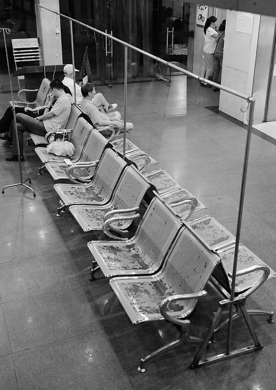 “我去之前先打聽了一下,說要排10多個(gè)小時(shí)的隊(duì),掛號(hào)的人都聚集在醫(yī)院急診的抽血化驗(yàn)候檢室,那里有椅子可以休息!标惻吭谙挛5點(diǎn)半左右來到醫(yī)院,候檢室里已有十來個(gè)外地模樣的人等著了,三三兩兩,有男有女。