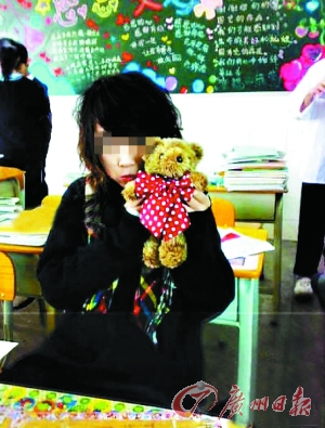 其中,富家女個(gè)人的多張照片是這名富家女舉著手機(jī)自拍的。照片中的富家女長(zhǎng)頭發(fā),看上去比較年幼可愛(ài)。一張她抱著玩具熊的合影則是在教室中拍的,身后還有黑板報(bào)。